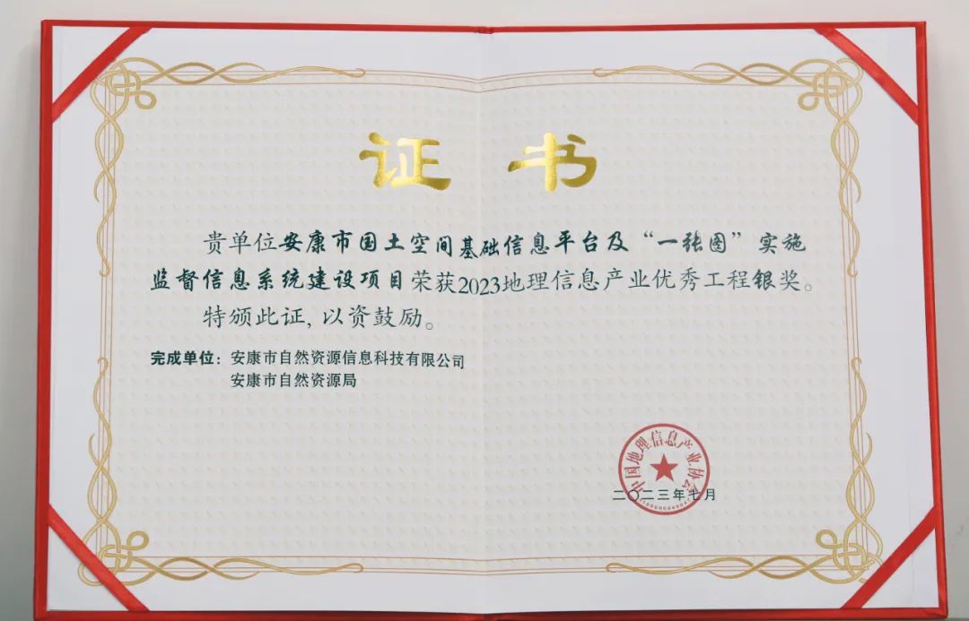 由安康市自然資源局組織建設,市自然資源信息科技有限公司承建的《安康市國土空間基礎信息平臺及“一張圖”實施監督信息系統建設服務項目》榜上有名,獲2023年地理信息產業優秀工程獎銀獎。該項目以第三次國土調查為基礎,依托自然資源“一張圖”,構建集“資源中心、展示中心、二三維展示中心、運維管理中心、開發中心”為一體的平臺系統,應用于自然資源管理各環節,全面提升安康市自然資源服務效率、治理能力、治理水平。